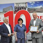 Герой России, летчик- космонавт Юрий Лончаков вручил руководству ОЭЗ «Липецк» памятный знак, облетевший Землю